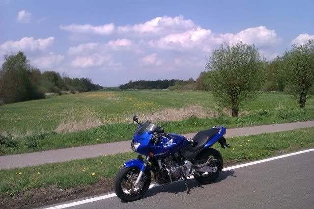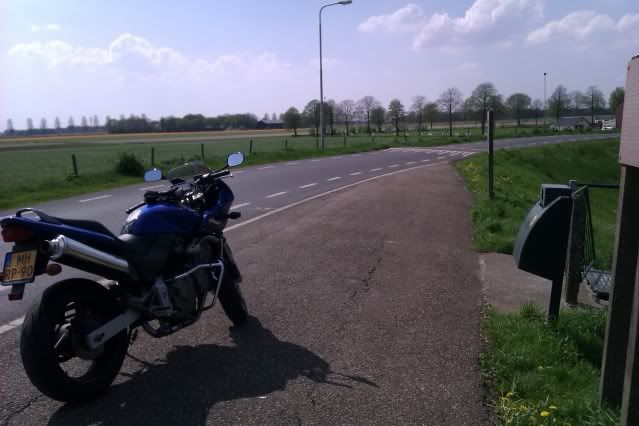 In Emmen dus ff bij m'n broertje gekeken. Kreeg al te horen dat alleen amerikanen welkom waren... tja.... ik rij een japanner he ;). Daarna zelf maar eens een kant opgereden. Kwam ik uiteindelijk in Schoonoord uit. Ook op de terugreis dus nog een boel nieuwe weggetjes gezien. Drenthe kan erg mooi zijn wat dat betreft. Uiteindelijk op het laatst nog een stuk omgereden om een stuk snelweg te kunnen pakken (ja, daar had ik gewoon even zin in), en toen ik terugkwam stond er dus weer 130 km bij. Hopen dat er nog veel van dit soort dagen mogen komen!!