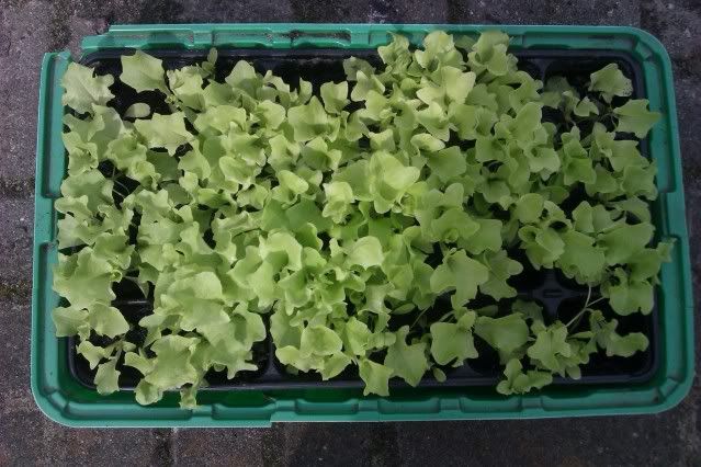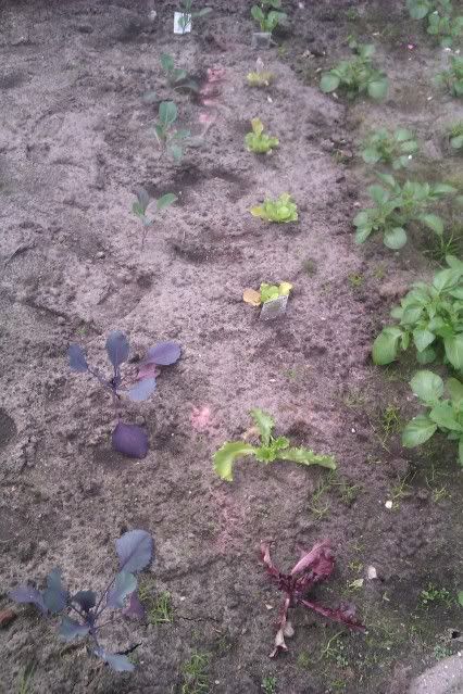 Bij de aardappels hebben we nog wat plantjes van het tuincentrum gezet. 2 rode kool, 4 witte kool (voor als de andere kooltjes niks wordt), 4 chinese kool, 4 paksoi, 1 eikenbladsla en 1 ijsbergsla. Doet het naar mijn idee ook allemaal prima. Daarnaast hebben we natuurlijk aardbeien staan, gewoon apart van de tuin. En heb ik nog gezaaide lollo bionda sla, die ook op het punt staat de tuin in te gaan.